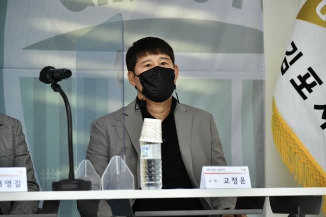 김포FC는 25일 홈 구장인 경기도 김포시 솔터축구전용구장에서 K리그2 진입 기자회견을 열었다. 이날 기자회견에는 정하영 김포시장과 서영길 대표 그리고 고정운 감독 등이 참석했다.