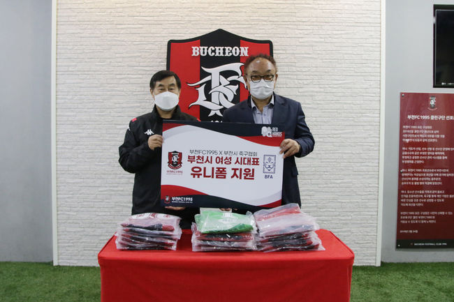 부천FC1995(이하 부천)가 부천시 지역 대표 여성축구단에 부천의 공식유니폼을 전달하는 행사를 진행하고 향후 부천의 여성축구 발전 지원 사업을 계획한다.