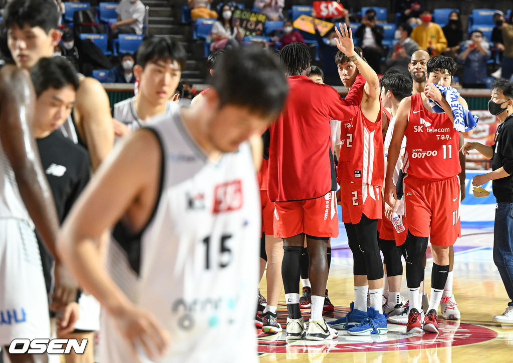 경기종료 후 5연승 거둔 SK 최준용이 KT 선수들에게 인사를 하고 있다. . 2021.11.05 / soul1014@osen.co.kr