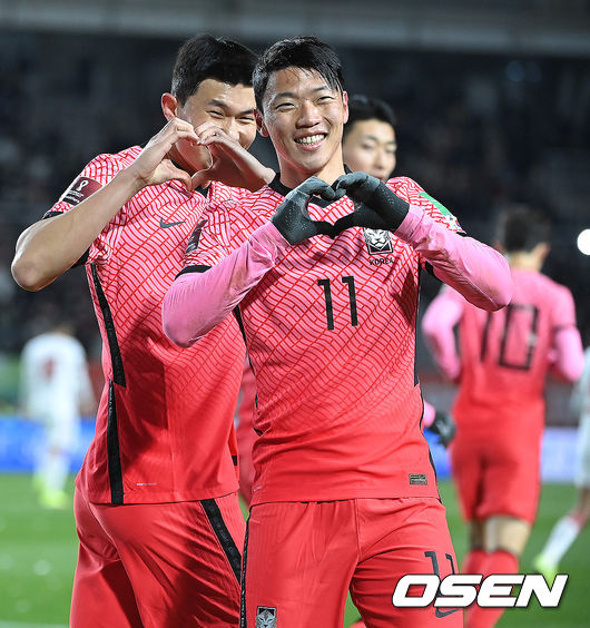 신장이 좋은 조규성은 최전방서 제공권 싸움을 해줬다. 손흥민이 올린 코너킥을 조규성이 헤더로 연결했다. 전반 13분 조규성의 오른발 슈팅이 왼쪽 골대를 맞고 나왔다.