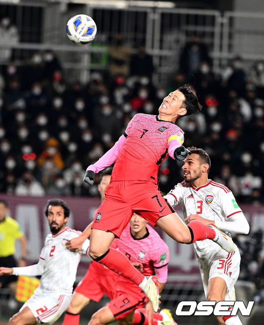 주장 완장을 찬 손흥민은 황희찬과 좌우측면을 휘저으며 최전방 조규성을 지원했다. 손흥민의 폭발적인 스피드와 환상적인 드리블에 UAE 수비진은 우왕좌왕했다. 손흥민은 골대를 두 번이나 맞추는 등 골이나 다름없는 절묘한 슈팅을 여러 차례 선보였다. 이날 손흥민을 막을 수 있었던 것은 오프사이드가 유일했다.