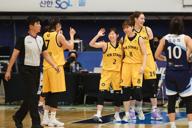 KB스타즈는 13일 인천도원체육관에서 열린 삼성생명 2021-2022 여자프로농구 인천 신한은행과의 원정경기에서 접전 끝에 77-75로 승리했다.