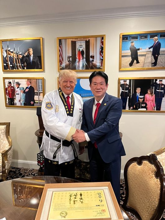 이동섭 국기원장은 11월 19일 오후 4시(현지 시각) 트럼프 전 대통령의 별장인 플로리다주 팜비치의 소재 마러라고 리조트를 방문, 트럼프 전 대통령에게 명예 9단증을 수여하고 태권도복을 증정했다.