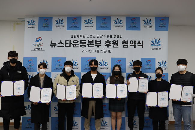 대한체육회는 23일 올림픽문화센터 대한체육회 대회의실에서 스포츠 유망주 홍보 캠페인 “뉴스타운동본부” 후원 협약식을 개최하고 선수들에게 후원 장학금을 전달하였다.