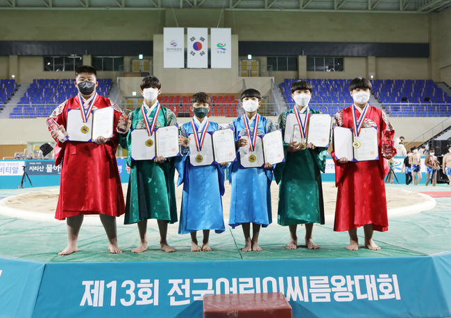 김은결(12·대구/매천초)와 임현성(13·울산/양지초), 강민상(13·강원/원통초), 김덕훈(12·강원원/성북초), 강현승(13·전남/관산초), 김건우(13·충남/엄사초)가 ‘제13회 전국어린이씨름왕대회’에서 체급별 씨름왕에 등극했다.