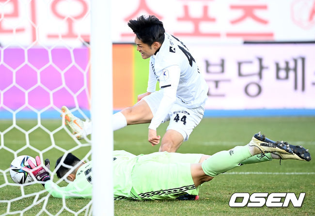 역습에 나선 성남은 전반 17분 이중민의 대각선 슈팅이 골대를 아슬아슬하게 빗나갔다. 결국 성남이 사고를 쳤다. 전반 30분 코너킥 상황에서 흘러나온 공을 안진범이 그대로 오버헤드 킥으로 연결해 골망을 흔들었다. 성남이 전반전 1-0으로 리드했다.
