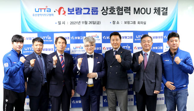 보람그룹(회장 최철홍)은 지난 26일 서울시에 위치한 보람그룹 본사에서 울산광역시탁구협회와 ‘보람상조 남자실업 탁구단 보람할렐루야’ 의 업무협약을 맺었다.