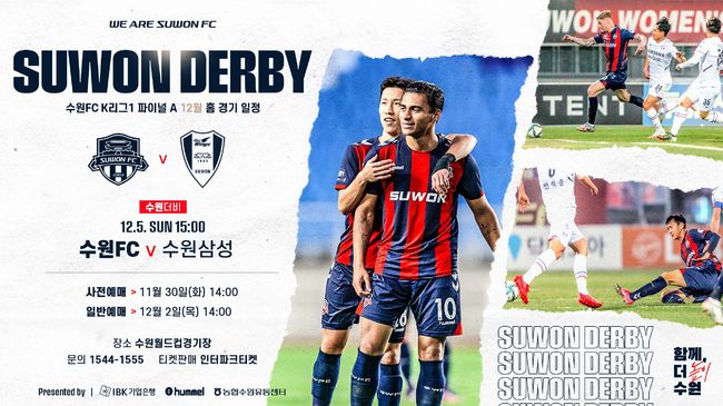 수원FC는 12월 5일 수원월드컵경기장에서 열리는 수원FC와 수원삼성의 ‘수원더비’에 최대 2만 명의 관중을 맞이한다.