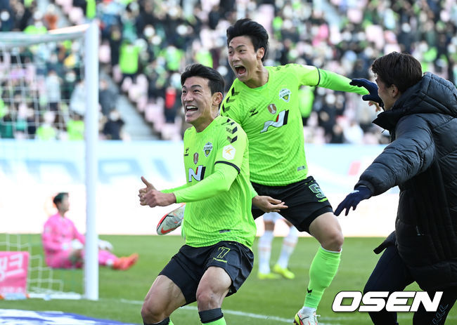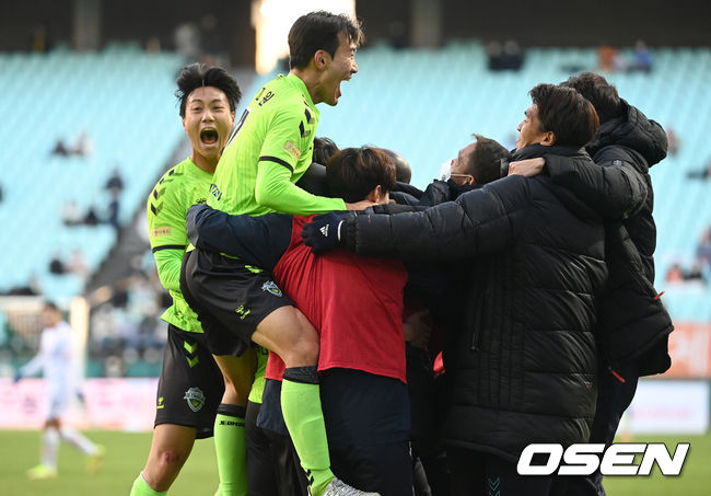 전북은 후반 28분 추가골을 터트렸다. 최철순의 패스를 받은 쿠니모토가 상대 수비를 뚫는 왼발 패스를 연결했다. 수비 뒷공간으로 연결된 패스를 이어받은 송민규는 제주 골키퍼와 일대일 상황에서 침착한 오른발 슈팅으로 득점, 2-0으로 달아났다. 전북은 후반 33분 김보경과 바로우를 투입, 추가 득점을 노렸다. 결국 전북은 문선민과 일류첸코를 투입하며 더욱 공격적을 축구를 펼쳤고 승리로 정상에 올랐다. /10bird@osen.co.kr