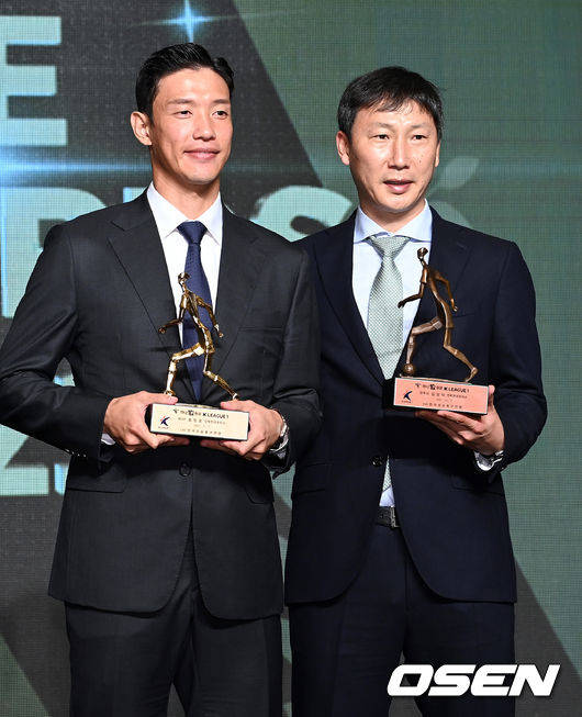 감독상을 받은 김상식 감독은 “좋은 상을 주셔서 감사하다. 오늘 결혼기념일인데 못 갈 것 같다. 사랑하는 아내와 아이들에게 아빠가 같이 못해서 미안하다. 장모님에게도 감사하다. 더 좋은 팀을 만들고 K리그 발전을 위해 노력하겠다”며 재치있는 소감을 남겼다.