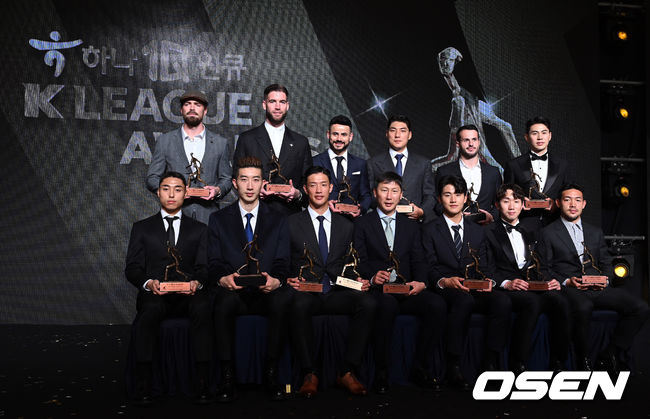 ‘하나원큐 K리그1 어워즈 2021’이 서울 홍제동 스위스그랜드호텔에서 개최됐다. 전북의 리그 5연패로 막을 내린 K리그1의 주역들이 한자리에 모였다. 유니폼을 입고 치열하게 경쟁했던 관계자들이 이번에는 말쑥한 정장을 차려입고 앉았다.