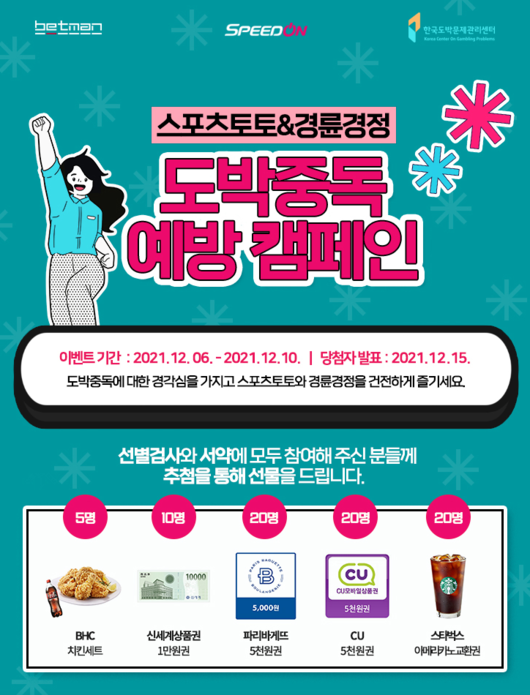 오는 10일(금)까지 한국도박문제관리센터, 국민체육진흥공단 경륜경정사업본부와 함께 베트맨에서 도박중독 예방 캠페인 진행