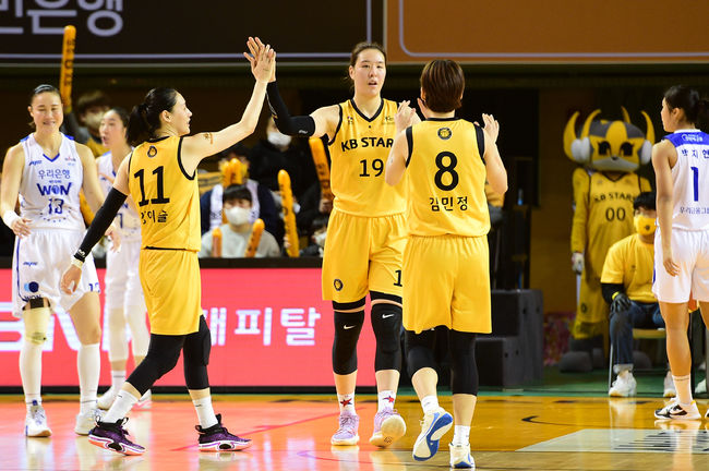 이날 승리로 KB는 4연승을 거두며 13승 1패로 1위를 질주했다. KB는 박지수가 20점-18리바운드로 더블-더블을 기록하며 승리를 이끌었다. 또 강이슬도 19점을 터트리며 힘을 보탰다.