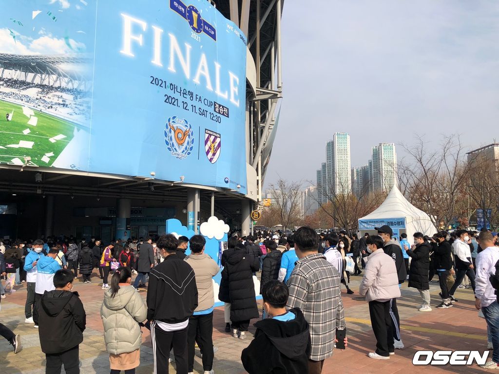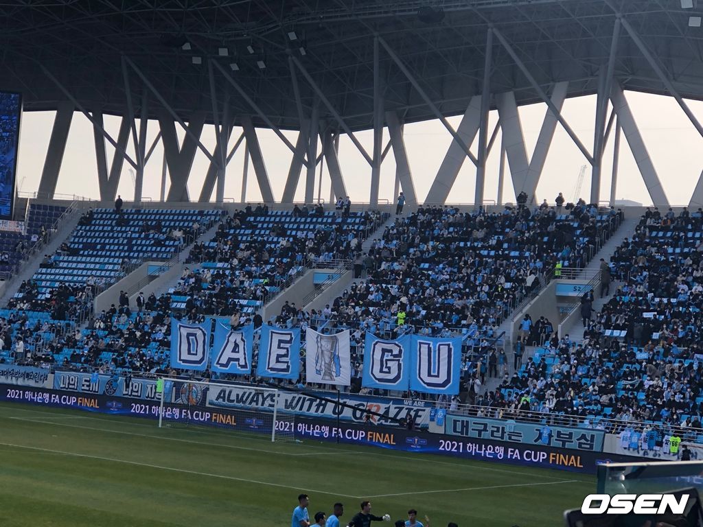 FA컵 결승 2차전을 앞두고 수많은 홈팬들이 대구은행파크를 찾았다. 백신접종완료자의 경우에 한해 100% 관중입장이 허용됐다. 팬들이 경기장내 육성응원은 하지 못해도 마스크만 철저히 쓰면 거리두기를 하지 않고 앉을 수 있었다. 일부 관중은 경기장에서 치킨까지 먹었다.