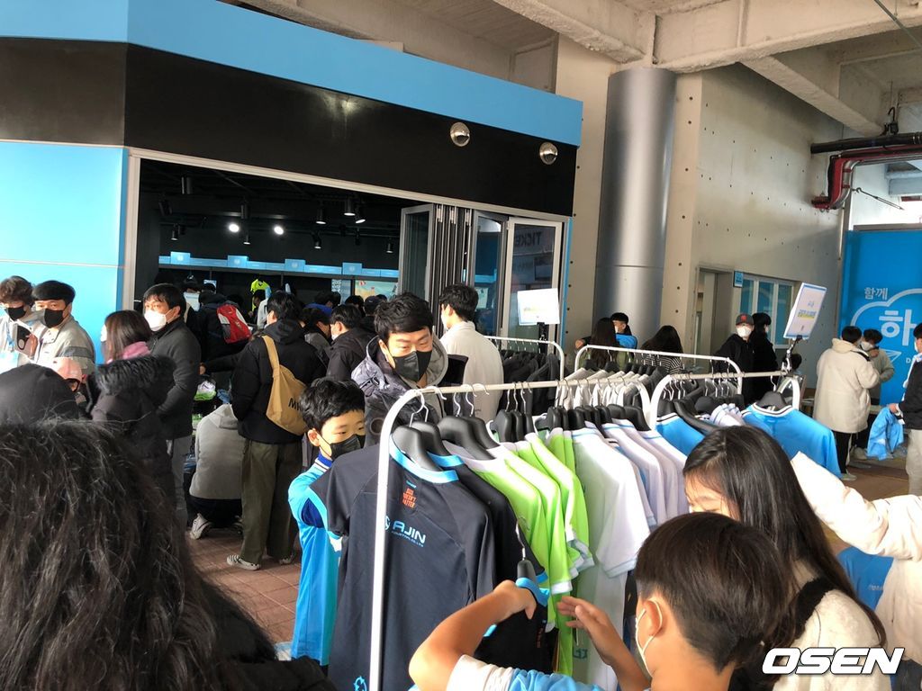 대구FC의 팀스토어에도 팬들이 많아 발디딜 틈이 없었다. 팀스토어 입장을 위해서 긴 줄을 서야 할 정도로 인기가 많았다. 대구은행파크에는 맥주집 등 상가가 바로 붙어 있다. 경기를 앞두고 가볍게 맥주를 즐기는 팬들도 많았다. 코로나 사태가 심각했던 지난해에는 상상도 못했던 일이다.