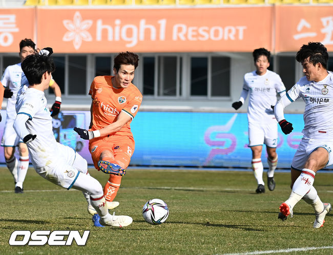 갑작스럽게 강원이 변했다. 눈빛이 달라졌다. 김대원이 대전 이지솔의 자채골을 이끌어 내며 전반 26분 한 골 만회한 강원은 끊임없이 공격을 펼쳤다. 정확한 패스를 통해 상대 진영에서 압박을 펼친 강원은 또 추가골을 터트렸다.