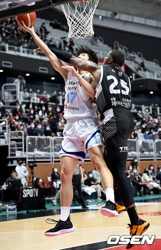 이날 이원석은 프로데뷔 후 각 부문 모두 최다인 17점에 12리바운드, 3스틸, 3블록슛으로 삼성선수 중에서는 가장 좋은 모습을 보였다. 신인상을 놓고 다투는 2순위 센터 하윤기는 덩크슛 포함 13점, 4리바운드를 기록했다. 최하위로 떨어진 삼성이지만 그래도 신인 이원석의 성장은 위안거리다. / jasonseo34@osen.co.kr