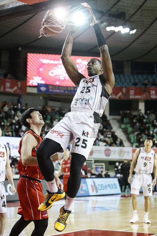 KT의 승리의 주역은 외인 라렌이었다. 그는 상대 외인이 없는 골밑에서 종횡무진 맹활약하며 24득점 23리바운드를 기록했다. 허훈 역시 19득점 3도움을 보탰다.