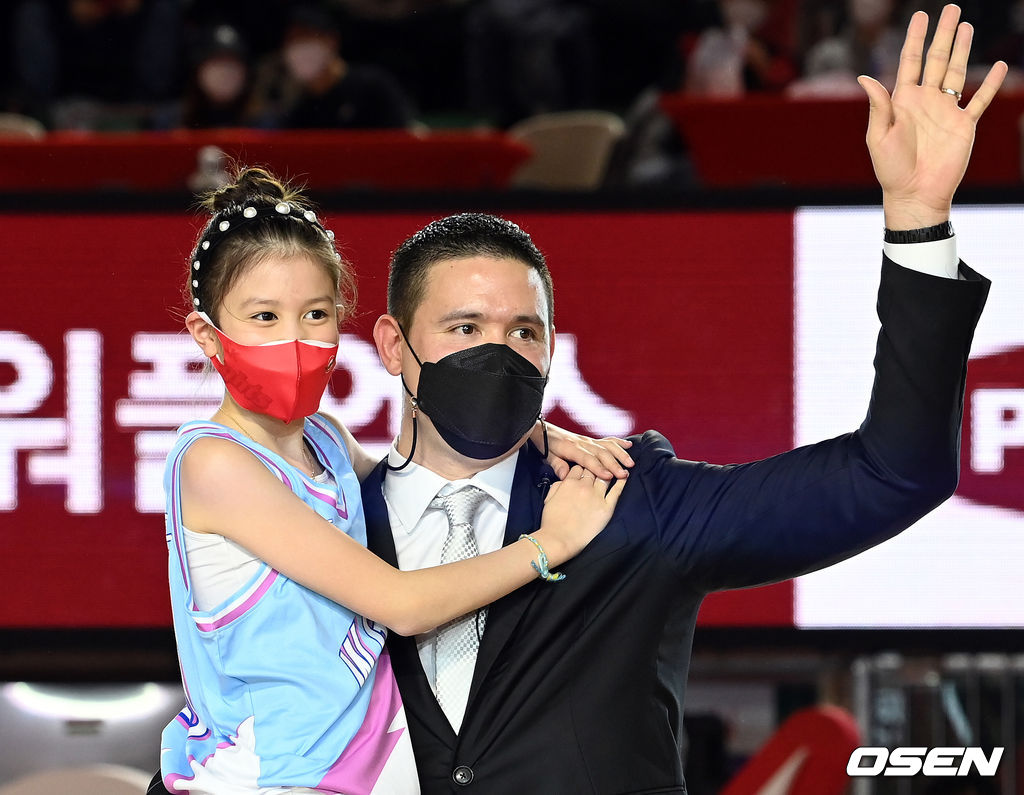 아빠 장점만 닮은 김민수의 붕어빵 딸김민수, 딸을 품에 안고 농구장 관중들 향한 마지막 작별인사