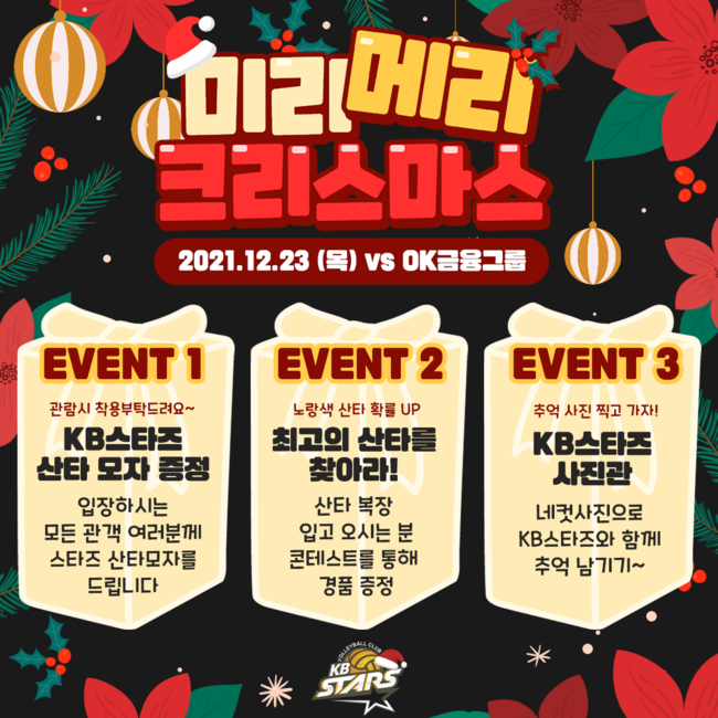 KB손해보험 스타즈 배구단(이하 KB배구단)은 오는 23일 목요일 의정부 홈 경기에 크리스마스를 맞이해 팬들을 위한 다양한 이벤트 및 행사를 준비했다.