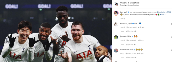 이를 본 홀랜드는 자신을 위한 손흥민과 동료들의 세리머니에 감격한 것처럼 보인다. 그는 감격했다는 눈물 이모티콘과 함께 기쁨을 나타냈다. /mcadoo@osen.co.kr