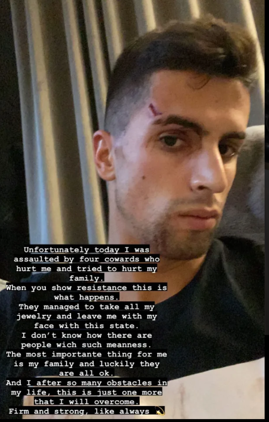칸셀루는 31일 자신의 SNS를 통해 최근 강도를 당했던 일화를 소개했다. 칸셀루의 얼굴에는 꿰맨 상처가 선명하게 남아있었다.