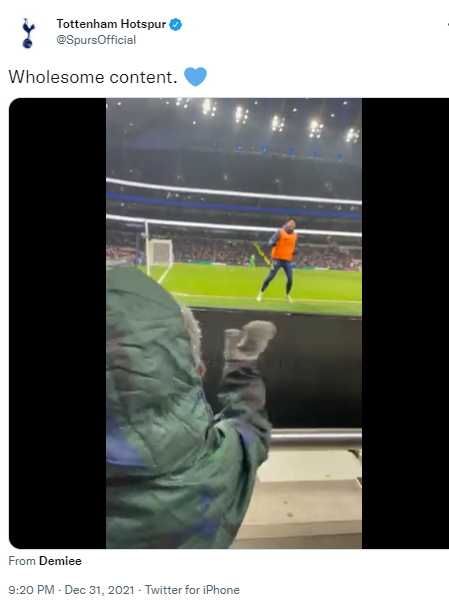 토트넘은 지난 2021년 12월 31일(한국시간) 공식 소셜미디어 채널(SNS)에 손흥민과 한 어린이 팬의 훈훈한 에피소드를 공개했다.