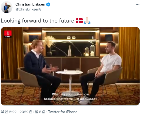 에릭센은 "내 목표는 2022년 카타르 월드컵에서 뛰는 것이다. 그것은 내 꿈이기도 하다"라면서 "나는 내가 다시 돌아올 수 있을 것이라고 믿는다"라고 강조했다.