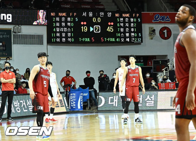 서울 SK는 9일 안양체육관에서 개최된 ‘2021-22 정관장 프로농구 4라운드’에서 안양 KGC인삼공사를 맞아 전반전까지 19-45로 26점을 뒤졌다.