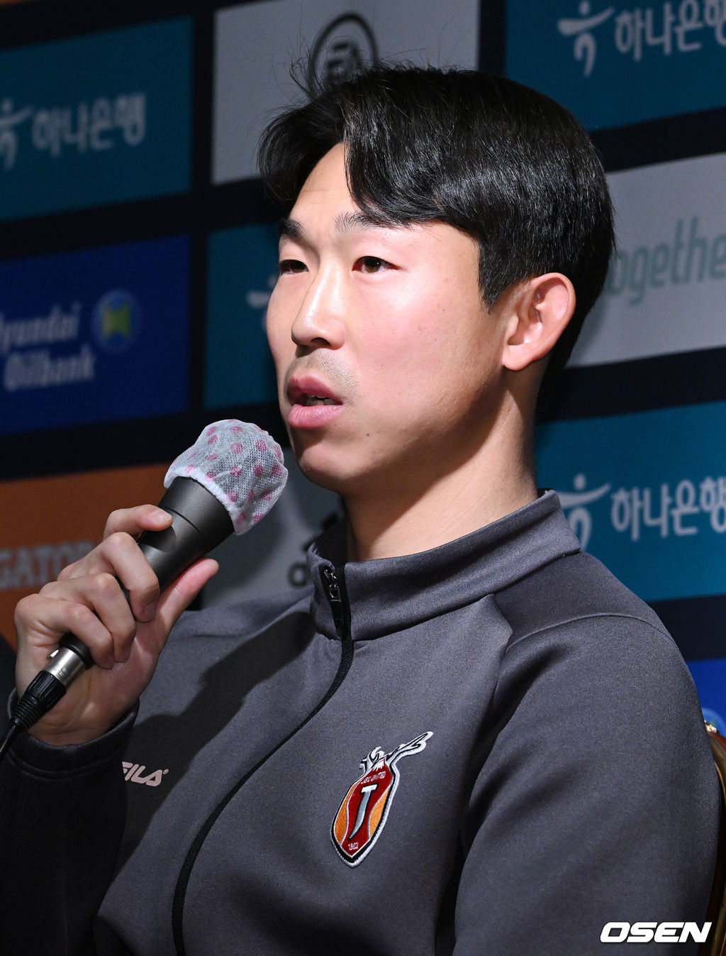 윤빛가람은 12일 제주 서귀포의 빠레브 호텔 기자회견장에서 열린 하나원큐 K리그 2022 전지훈련 1차 미디어 캠프 기자회견에서 제주에 복귀한 소감과 다음 시즌 목표에 관해 이야기했다. 윤빛가람의 목표는 리그 우승이었다.