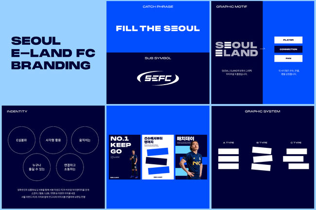 서울 이랜드 FC의 통합 브랜딩 콘셉트는 ‘NEW ERA’이다. 목동 시대의 시작, 새로운 공간에서 서울 이랜드 FC을 제대로 보여주겠다는 의지를 나타냈다. 더불어, 축구 본연의 클래식함을 강조하기 위해 심플함과 역동성을 브랜딩에 녹여냈다.