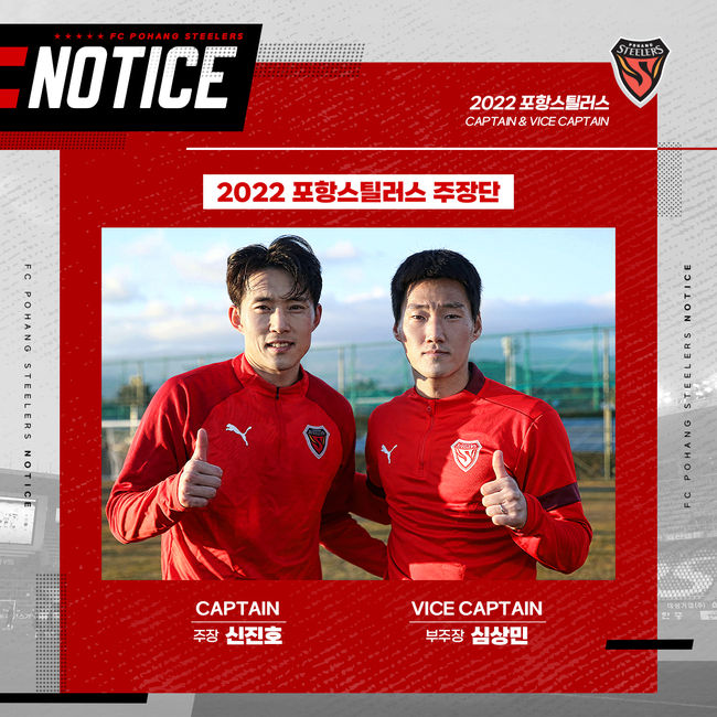 2022 시즌 포항스틸러스 선수단을 이끌 주장으로 신진호, 부주장으로 심상민이 선임됐다.