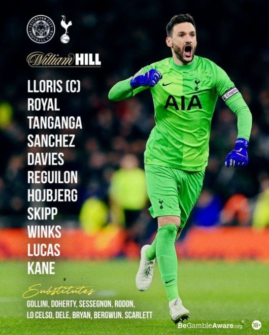 중원은 세르히오 레길론-해리 윙크스-피에르 호이비에르-올리버 스킵-에메르송 로얄이 나선다. 스리백은 벤 데이비스-다빈손 산체스-자펫 탕강가가 나선다. 골키퍼는 휴고 요리스.