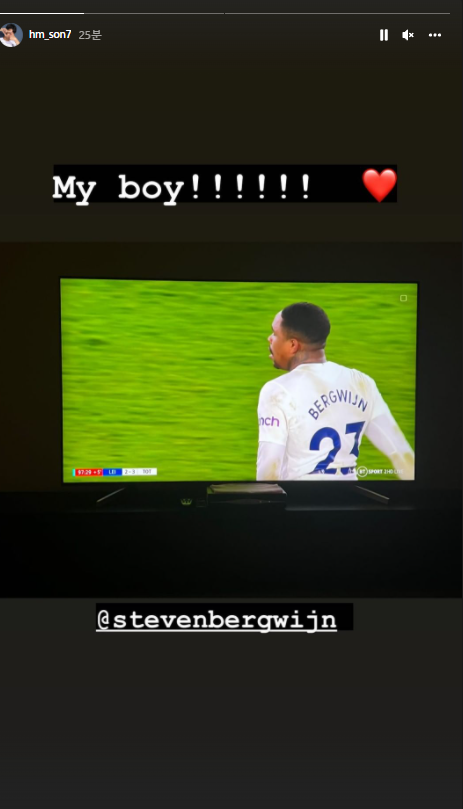 손흥민이 자신을 대신해 팀에게 승리를 선사한 스티븐 베르바인에게 '따봉'을 보냈다.