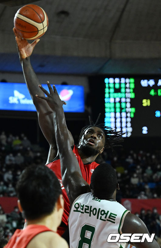 외국인 선수 오브라이언트를 빼고 경기에 임했던 DB는 턴오버까지 겹치며 완전히 무너졌다. 높이 뿐만 아니라 스피드서도 완전히 압도한 SK는 전반을 58-38로 크게 리드했다.