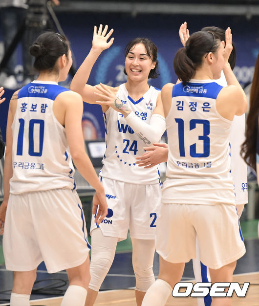 박지현이 22점으로 최다득점을 올렸다. 홍보람과 김소니아가 나란히 14점씩 올렸다. 우리은행은 무려 6명이 11점 이상을 기록했다.
