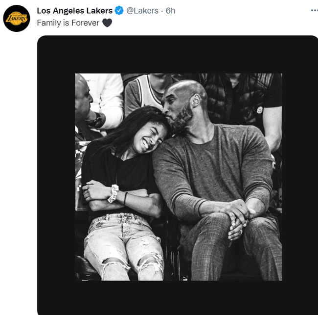 코비의 전 소속팀 LA 레이커스도 코비와 지아나의 사진을 올리며 ‘가족은 영원하다’는 메시지를 담았다. 코비는 1996년부터 2016년까지 레이커스에서만 20년을 뛰면서 5번의 우승을 안겼다. 코비의 등번호 8번과 24번은 모두 레이커스에서 영구결번 됐다.