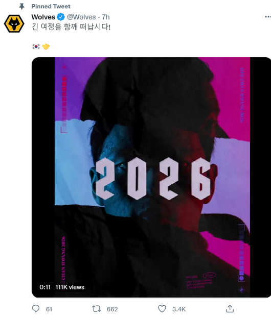 울버햄튼 SNS는 26일 황희찬의 계약소식을 전하며 한글로 “긴 여정을 함께 떠납시다”라는 의미 있는 메시지를 올렸다. 황희찬과 4년 계약을 맺은 것에 대한 기쁨의 표현이었다.