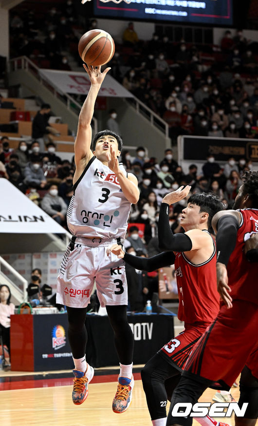 KT는 29일 안양체육관에서 개최된 ‘2021-22 정관장 프로농구 4라운드’에서 안양 KGC인삼공사를 77-67로 이겼다. 4연패를 끊은 2위 KT(24승 12패)는 선두 SK(27승 8패)와 3.5경기 차다. 3연승이 좌절된 KGC(21승 15패)는 현대모비스와 공동 3위로 내려앉았다.