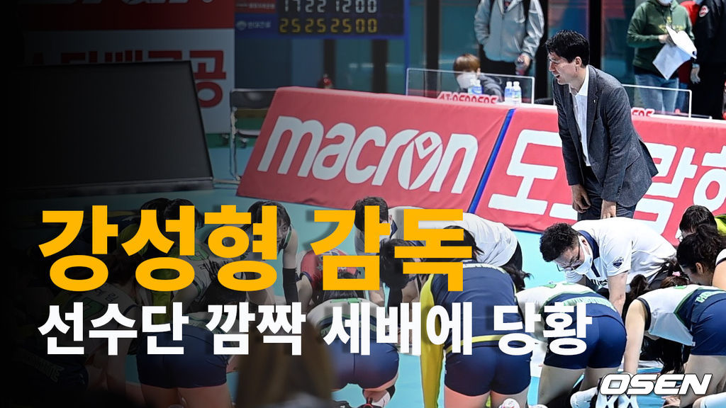 경기 후 미팅을 마친 현대건설 선수단이 깜짝 세배를 하자 당황한 강성형 감독의 모습이 웃음을 자아낸다. 2022.01.31 /sunday@osen.co.kr