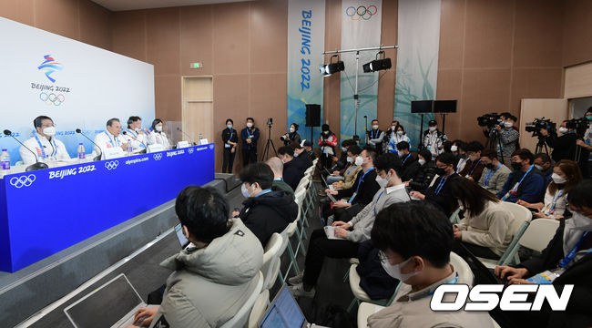 지난 7일 중국 베이징의 캐피털 인도어 스타디움에서 열린 2022 베이징 동계올림픽 쇼트트랙 남자 1000m 경기에서 한국 쇼트트랙 대표팀은 석연치 않은 판정의 희생양이 된 것에 대한 공식적인 항의를 펼치겠다는 것을 발표하는 자리였다.