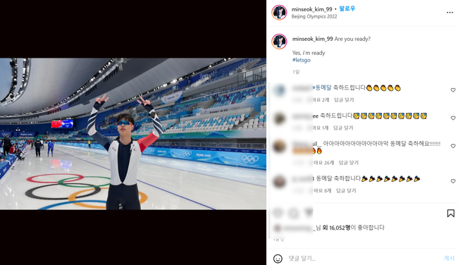 동메달 소식이 알려진 후 팬들은 김민석의 SNS에 몰려가 응원과 격려의 댓글을 달고 있다. 김민석이 7일 “난 준비됐다”고 올린 게시물에 팬들이 댓글을 달고 있다.