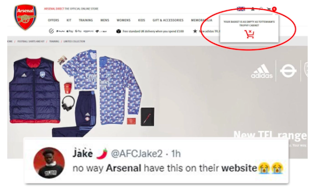 더 선은 "아스날의 공식 스토어 웹사이트는 비어있는 장바구니에 대해서 '토트넘의 우승 트로피 진열장처럼 비어있다'라고 표핸해서 자신들의 팬을 즐겁게 했다"고 설명했다.