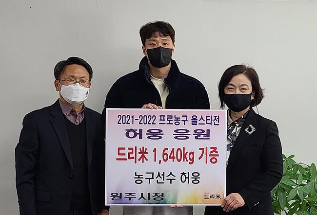 허웅(원주 DB)가 지난 1월 올스타전때 팬들이 모아 전달받은 쌀을 10일 원주시에 기부했다.