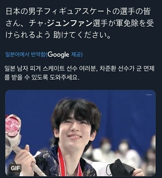 일본팬들은 “제발 한국에서 차준환이 군면제를 받도록 도와주세요”, “차준환의 5위는 인류적으로 1위와 같기에 군면제가 되면 좋겠다”, “차준환은 앞으로 한국피겨계를 이끌어갈 소중한 존재이기에 8위 안에만 들면 군면제 해주면 좋겠다”는 글을 올리고 있다.