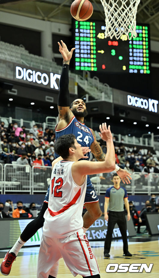 KT는 11일 수원 KT소닉붐 아레나에서 개최된 ‘2021-22 정관장 프로농구 5라운드’에서 울산 현대모비스를 68-66으로 이겼다. 25승 14패의 KT가 2위, 25승 17패의 현대모비스가 3위다.
