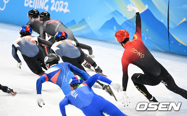 중국은 16일 오후 베이징 캐피털 실내경기장에서 열린 2022 베이징 동계올림픽 쇼트트랙 남자 5000m 계주 결승에 나서 6분 51초 654를 기록, 5팀 중 꼴찌로 경기를 마쳤다.