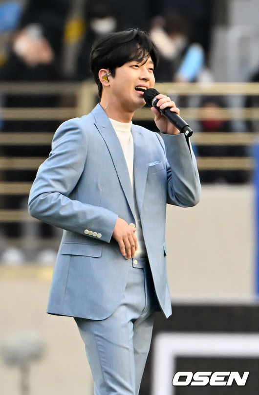 무대에 선 이찬원은 ‘힘을 내세요’, ‘편의점’, '진또배기' 등 자신의 히트곡을 열창했다. 이찬원은 “대구에서 초중고를 모두 나온 대구 시민으로서 올해는 창단 20주년을 맞은 대구FC가 꼭 우승하길 진심으로 기원한다”고 밝혀 큰 박수를 자아냈다. / jasonseo34@osen.co.kr