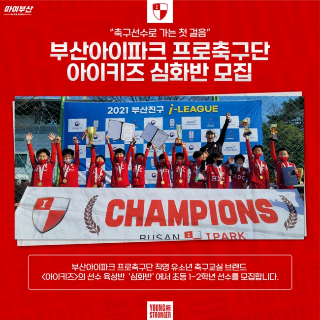 부산아이파크 프로축구단이 운영 중인 유소년 축구교실 브랜드 아이키즈(I-kids)의 선수 육성반 ‘심화반’에서 초등 1, 2학년(14, 15년생) 공개 모집을 실시한다.