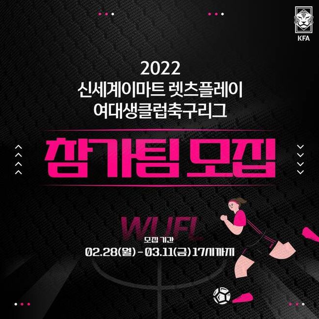 KFA는 28일 '2022 신세계이마트 렛츠 플레이(Let’s Play) 여대생 축구클럽 리그'를 개최한다고 밝혔다.